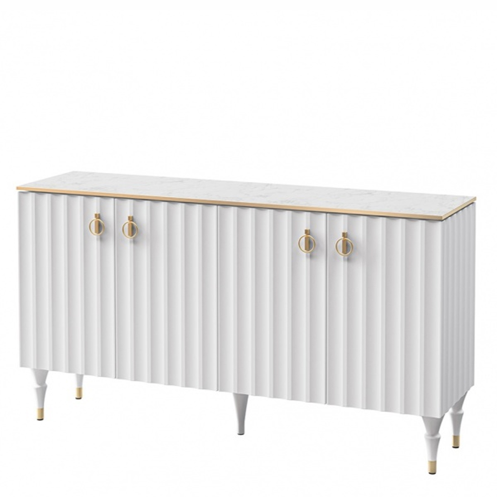 Консоль четырёхдверная с белым рельефным фасадом Expanses of Beauty Белый Золотой Белый Мрамор Bianco в Челябинске | Loft Concept