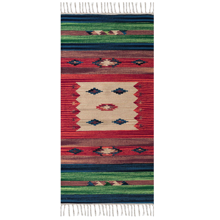 КОВЕР КЕЛИМ MANGO. это ковер сделанный растительными волокнами. Красочный орнамент, расположенный по всей поверхности ковра. Рисунок симметричен, с достаточно яркими цветными узорами. Оживит и добавит уют в комнате.