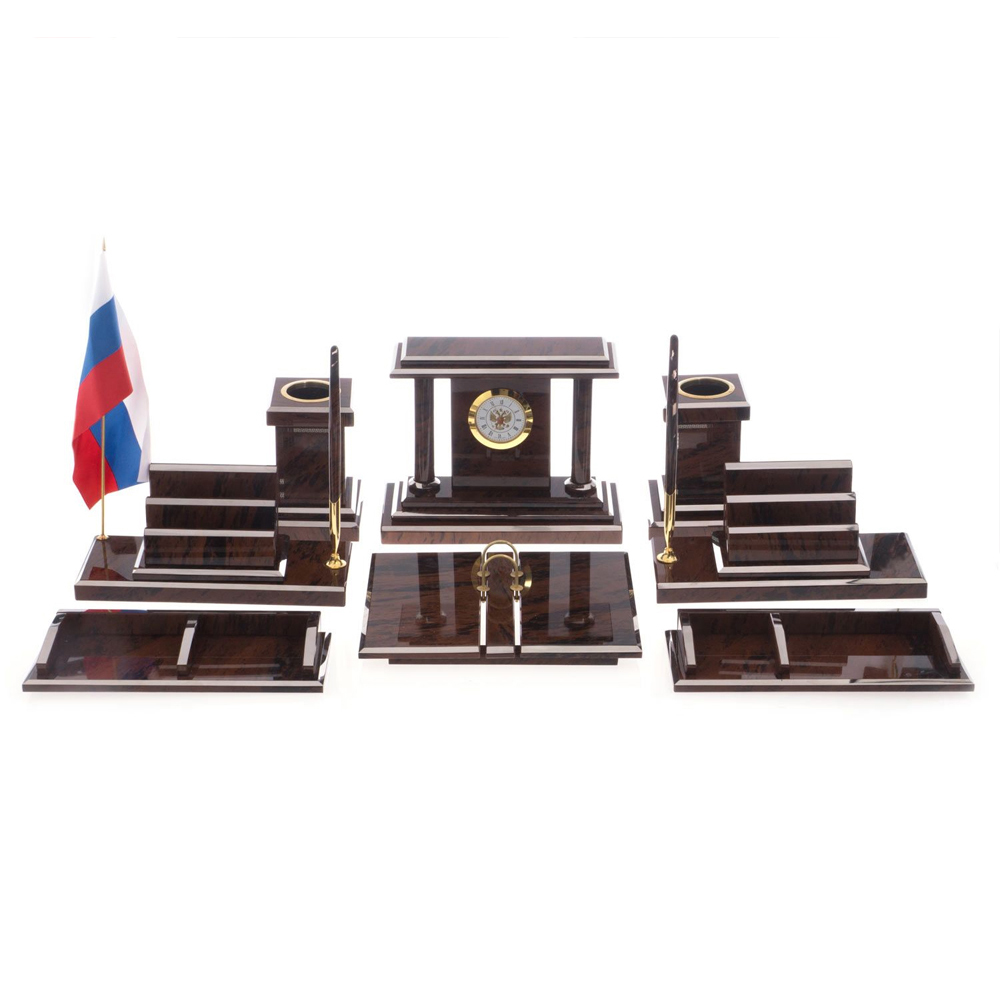 Настольный письменный набор из природного камня обсидиана Team leader Коричневый Бронза в Челябинске | Loft Concept