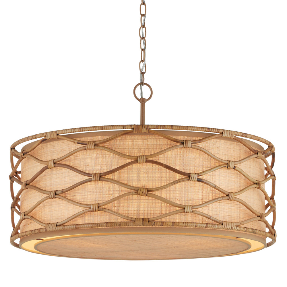 Подвесной светильник  из кованого железа и абажуром из ротанга Wicker Furniture Светло-коричневый  Бежевый в Челябинске | Loft Concept