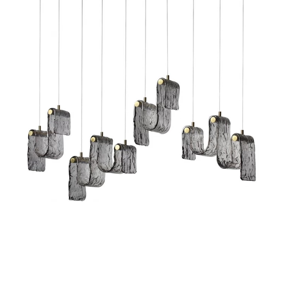 Подвесной светильник линейный с плафонами волнистой формы из фактурного стекла Big Wave