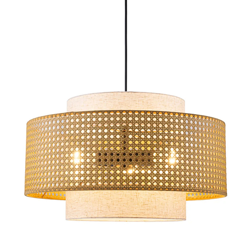 Подвесной светильник с декоративным поясом из плетеного бамбука Biuloggicu Бежевый Черный в Челябинске | Loft Concept