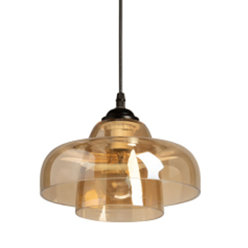 Подвесной светильник с двухъярусным плафоном цвета янтарь Honey Layer Янтарный Черный в Челябинске | Loft Concept