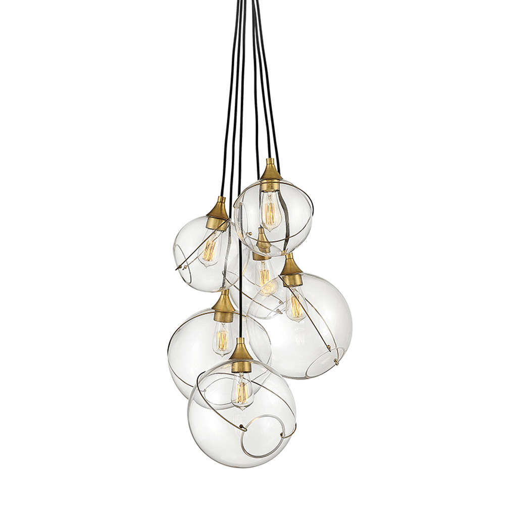 Подвесной светильник с шестью прозрачными стеклянными шарообразными плафонами Hinkley